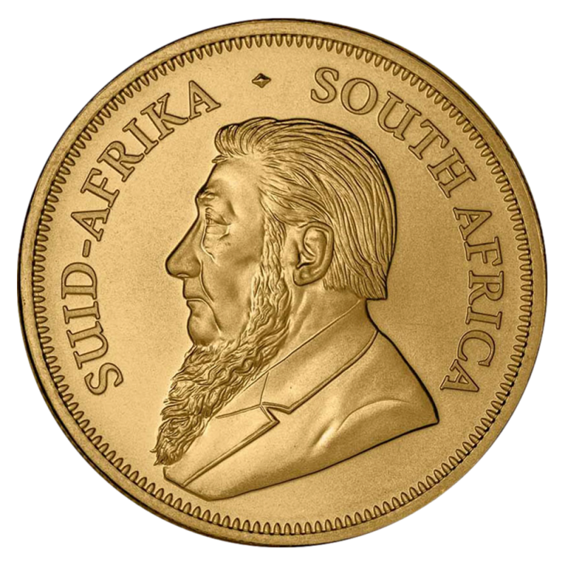 Krugerrand gullmynter produseres av South African Mint. Lett gjenkjennelig med den karakteristiske oransje fargen og den galopperende Springbok-antilopen på baksiden. På forsiden er profilen til den anerkjente sørafrikanske presidenten, Paul Kruger. Han var en stor helt i den første Boer-krigen, og var President i fire perioder på rad mellom 1883 og 1900. Den populære presidenten og landets nasjonale valuta Rand utgjør gullmyntens navn, Krugerrand.